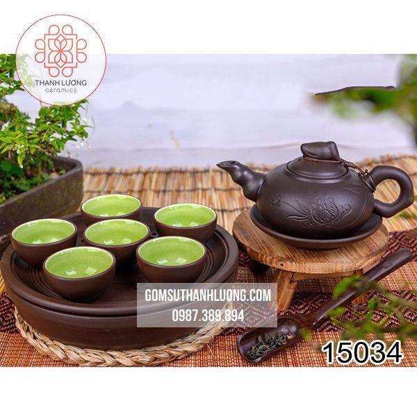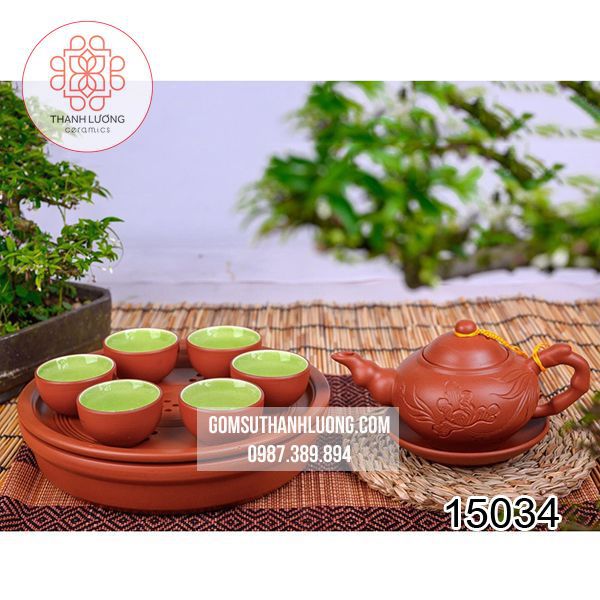 - Bộ sản phẩm gồm: 1 ấm, 1 đĩa kê ấm, 6 chén, 1 khay