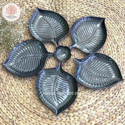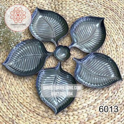 Bộ Đĩa Hoa Bát Tràng Men Hỏa Biến – 6013